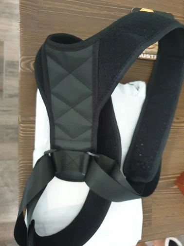 The postural correction belt is made of very soft composite fabric and nylon tape, and breathable holes are adopted in back and shoulder straps.